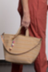 Made in light cotton fabric with vertical stripes that stylize the silhouette.
