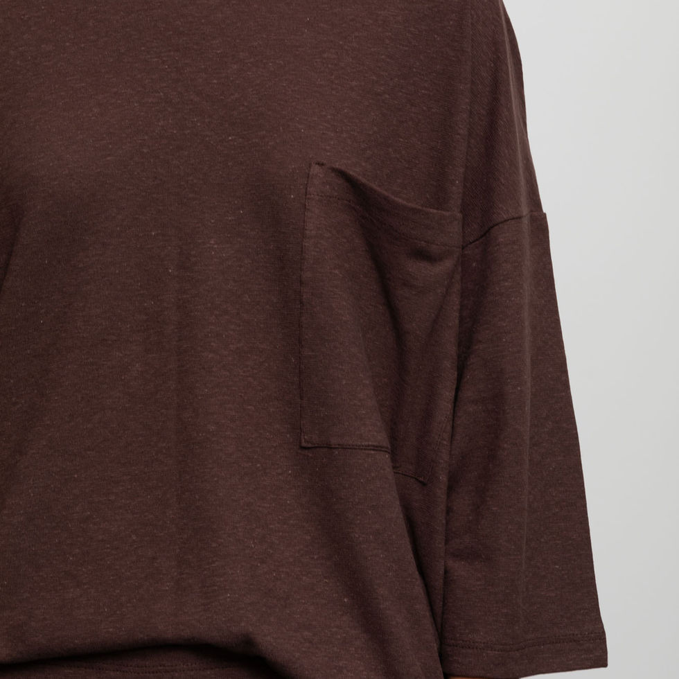 Loose-fitting T-shirt with three-quarter sleeves and a relaxed fit.